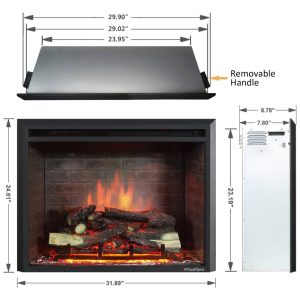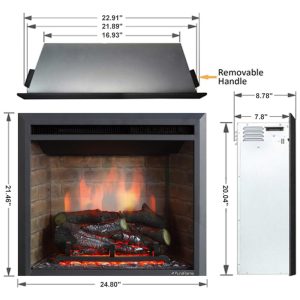 Lareira Elétrica de Embutir A60x78L com Controle Remoto e Porta de Vidro 1500W 110v PURAFLAME Preto