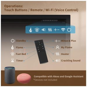 Lareira Elétrica PuraFlame EF302A de Embutir A56x89L com Controle Remoto 110V 1500W Preta