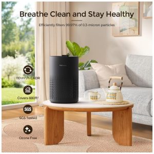 Purificador de Ar de Quarto com Filtro HEPA H13 para Pólen Fumaça Odor 110V v Preto