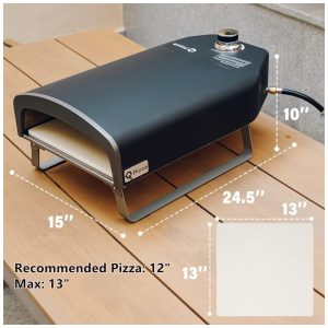 Forno de Pizza a Carvão Portátil Aço Inoxidável com Pedra de Pizza Q Pizza Preto