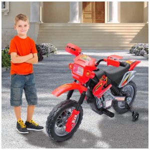 Moto Elétrica Infantil Off Road a Bateriva 6V com Rodas de Treinamento Qaba Vermelha