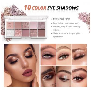 Kit Maquiagem Tudo em Um QIONG Tons Cimento Paleta Sombras 10 Cores Máscara Impermeável Delineador Líquido Brilho Labial Pincéis 6 Peças