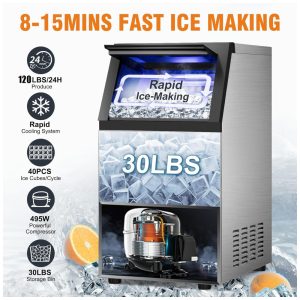 Máquina de Gelo Profissional Que Produz 54 kg em 24H com Armazenamento de 13 kg Tamanho do Gelo Ajustável e Limpeza Automática 110V 495W RAPSUAR Preta