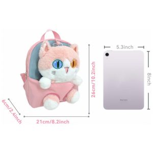 Mochila infantil RETEN com gatinho de pelúcia removível para crianças