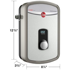 Rheem Aquecedor Elétrico Sem Tanque Termostático 65 kW 240V Compacto para Ponto de Uso