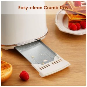 Torradeira Elétrica Retrô 2 Fatias em Aço Inoxidável com 6 Níveis de Tostagem e Bandeja de Migalhas Removível 825W Roter Mond Creme
