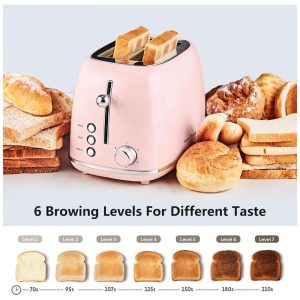 Torradeira Elétrica Retrô 2 Fatias em Aço Inoxidável com 6 Níveis de Tostagem e Bandeja de Migalhas Removível 825W Roter Mond Rosa