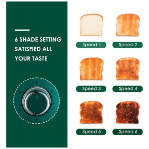 Torradeira Elétrica Retrô 4 Fatias em Aço Inoxidável com 6 Níveis de Tostagem e Slot Extremamente largo 800W Roter Mond Verde