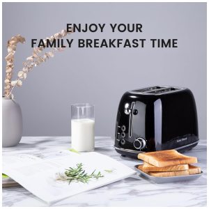 Torradeira Roter Mond 2 Fatias Preta Inox 6 Níveis Funções Bagel/Descongelar/Cancelar Bandeja Removível Retro 110V