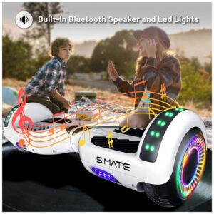 Hoverboard SIMATE Grafite com Bluetooth, Luzes de LED e Controle por App – Crianças e Adultos