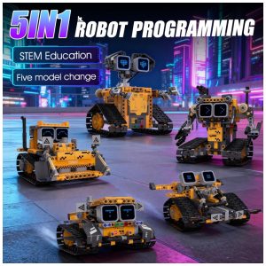 Kit de robô STEM 5 em 1 Sciencow com controle remoto e montagem modular amarelo e preto