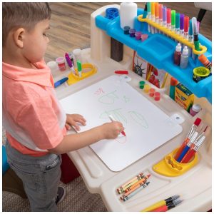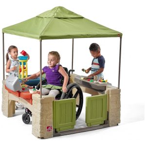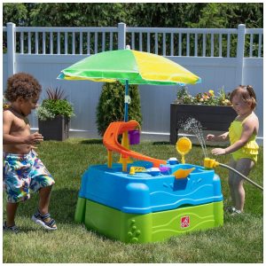 Mesa de Atividades Sensoriais com Água 2 Níveis Guarda Chuva e Acessórios Step2 Azul