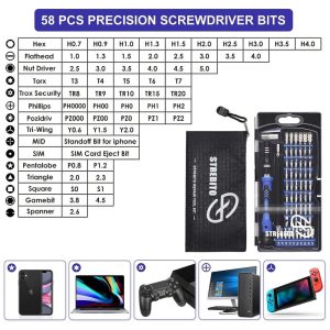 Kit de Chaves de Fenda de Precisão STREBITO 79 Peças Azul 58 Bits CR-V Magnéticos Pulseira ESD