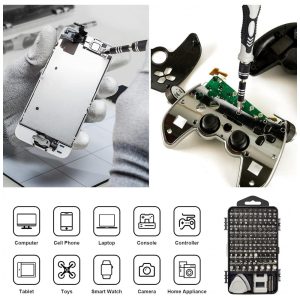 Kit de Chaves de Fenda de Precisão STREBITO 124 Peças Cinza 101 Bits CR-V Magnéticos 4mm