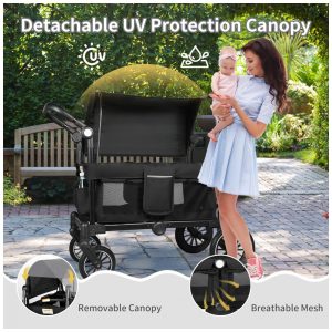Carrinho de Passeio Dupla Todecare Preto com Alça Ajustável e Rodas Amortecedoras