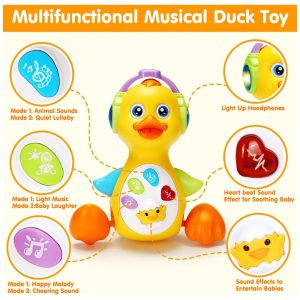 Pato musical Tsomtto com luz movimento e botões sonoros para tummy time e engatinhar