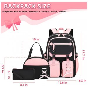 Mochila escolar TYHOTULY infantil juvenil rosa 3 peças com lancheira e estojo grande capacidade 23 L