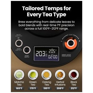 Chaleira elétrica de vidro com infusor Vianté preta controle de temperatura 15L programas para chá 100B 110V