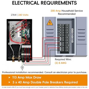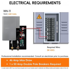 Aquecedor de Água Elétrico Tankless WINTEMP WN11 Cinza 11 kW 240V Display LED até 26 GPM