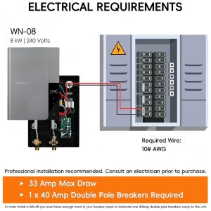Aquecedor de Água Elétrico Tankless WINTEMP WN08 Cinza 8 kW 240V Display LED até 19 GPM
