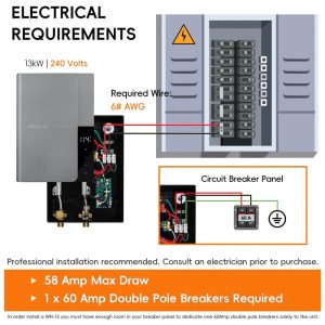 Aquecedor de Água Elétrico Tankless WINTEMP WN13 Cinza 138 kW 240V Display LED até 31 GPM