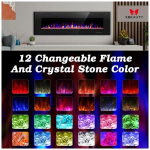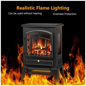 Lareira Elétrica Portátil com Chamas Realista Design Retrô e Termostato 110V 1500W Xbeauty Preta