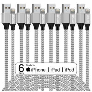 Carregador para iPhone Trançado Carregamento rápido Longo Compatível com iPhone 12Pro Max 12Pro 12 11Pro Max 11Pro 11 XS Xs Max XR e mais prata e branco YEFOOT Cinza