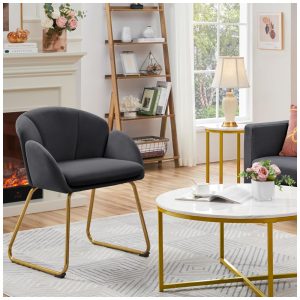 Cadeira Yaheetech em veludo cinza formato flor poltrona para penteadeira com pés metálicos dourados
