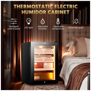 Umidor para Charutos e Vinho Elétrico 50L com Prateleiras em Madeira de Cedro Espanhol e Higrômetro Hermético 110V Cigarwong Preto