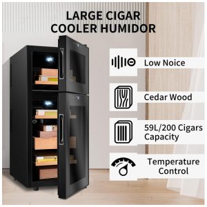 Umidor para Charutos Elétrico com 2 Portas Controle de Temperatura Capacidade para 200 Charutos e 5 Prateleiras 110V Demcigar Preto