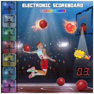 Cesta de Basquete com 4 Bolas Placar Eletrônico Volume Ajustável Luzes LED de 7 Cores e Controle Remoto Ideal para Crianças e Adultos Maysida Azul