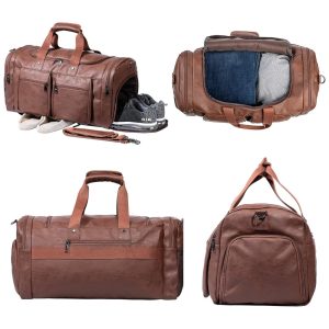 Bolsa de Viagem Masculina Clássica de Couro Sintético SEYFOCNIA Marrom