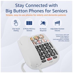 Telefone com Fio Memória de Foto Botões Grandes e Volume Alto para Sênior SMPL 56010 Branco
