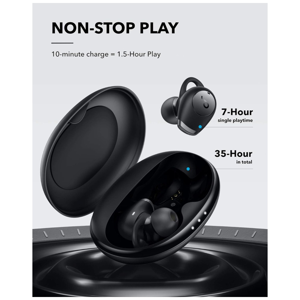 Tempo de reprodução de 35 horas obtenha 7 horas de audição com uma única carga dos fones de ouvido sem fio e, em seguida, use o estojo de carregamento compacto para recarregá los mais 4 vezes. Isso significa pelo menos 2 semanas de deslocamento diário com uma única carga