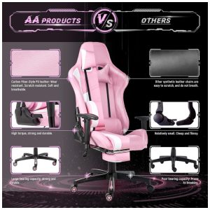 AA Cadeira de Escritório Gamer Reclinável e Ergonômica com Apoio de Braço Ajustável Rosa