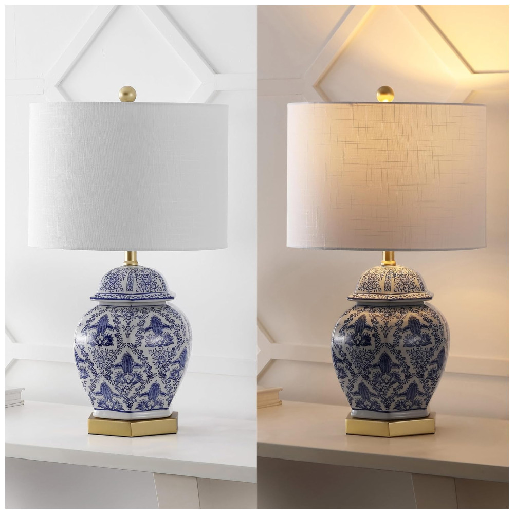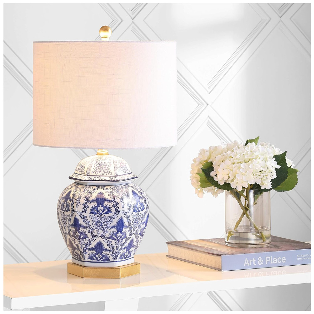 Abajur Luminária de Mesa em Cerâmica Estilo Clássica Tradicional com 63 cm de Altura para Quarto Sala de Estar e Escritório 110V 100W JONATHAN Y Azul e Branco