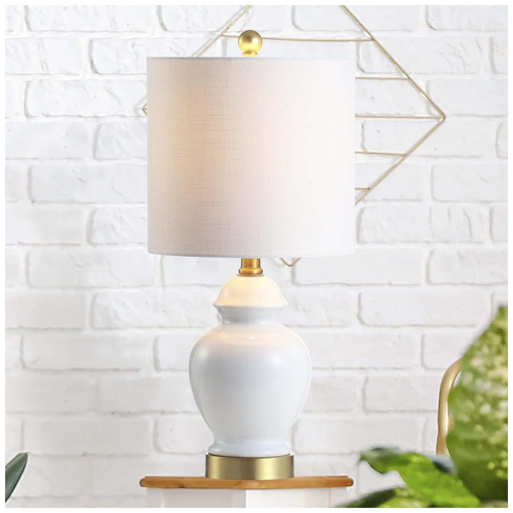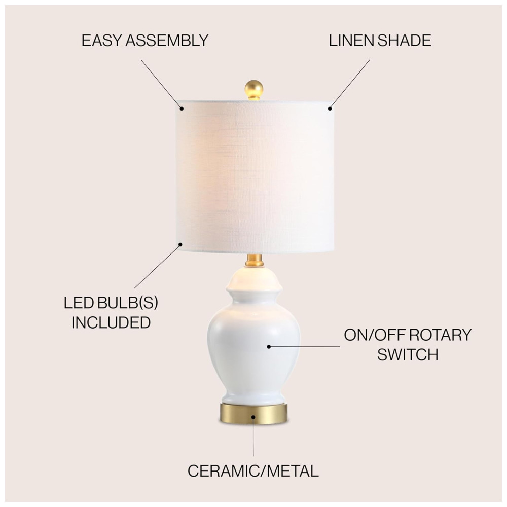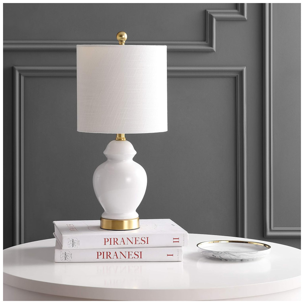 Abajur Luminária de Mesa em Cerâmica Estilo Clássico Francês com 50 cm de Altura para Quarto Sala de Estar e Escritório 110V 40W JONATHAN Y Branco e Dourado