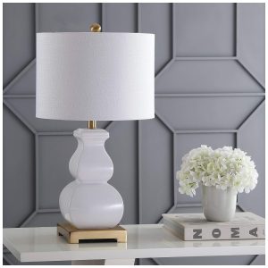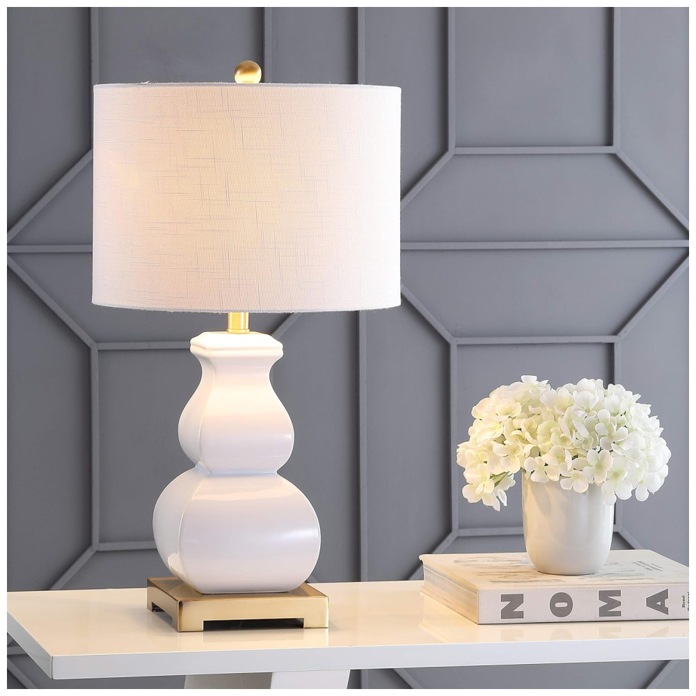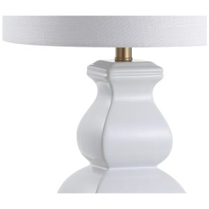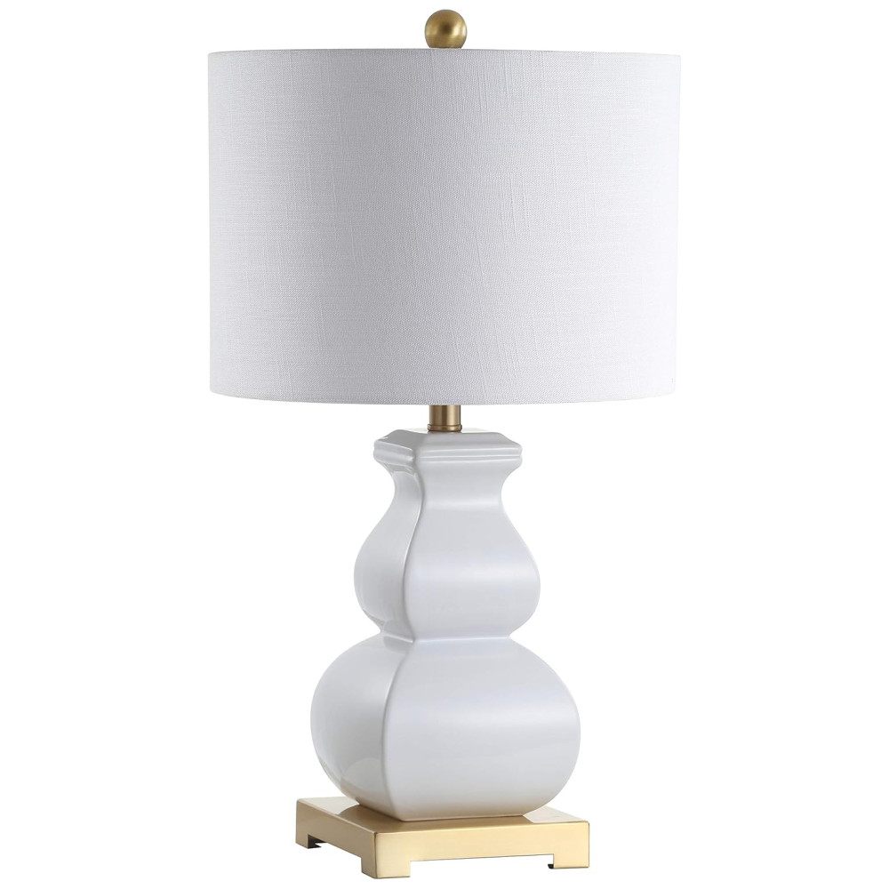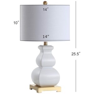 Abajur Luminária de Mesa em Cerâmica Estilo Contemporânea com 64 cm de Altura para Quarto Sala de Estar e Escritório 110V 100W JONATHAN Y Branco e Dourado