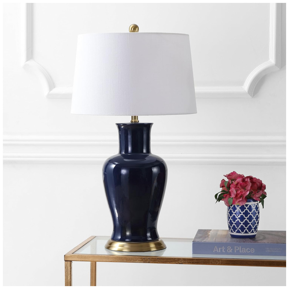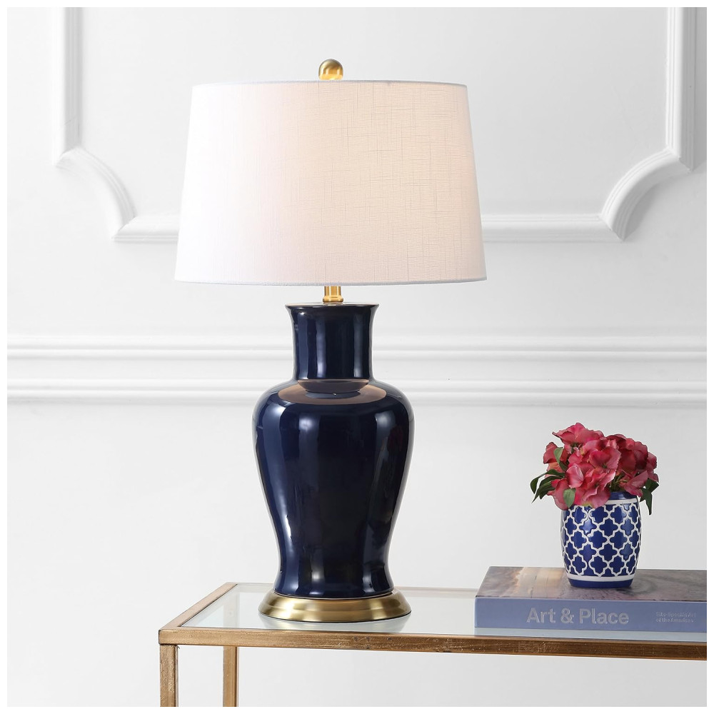 Abajur Luminária de Mesa em Cerâmica Estilo Tradicional com 73 cm de Altura para Quarto Sala de Estar e Escritório 110V 100W JONATHAN Y Azul Marinho