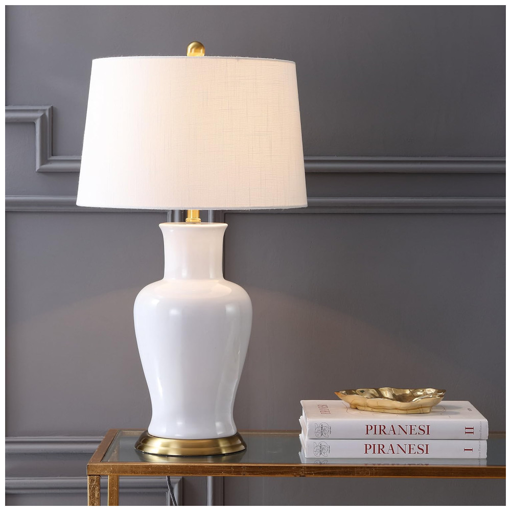 Abajur Luminária de Mesa em Cerâmica Estilo Tradicional com 73 cm de Altura para Quarto Sala de Estar e Escritório 110V 100W JONATHAN Y Branco e Dourada
