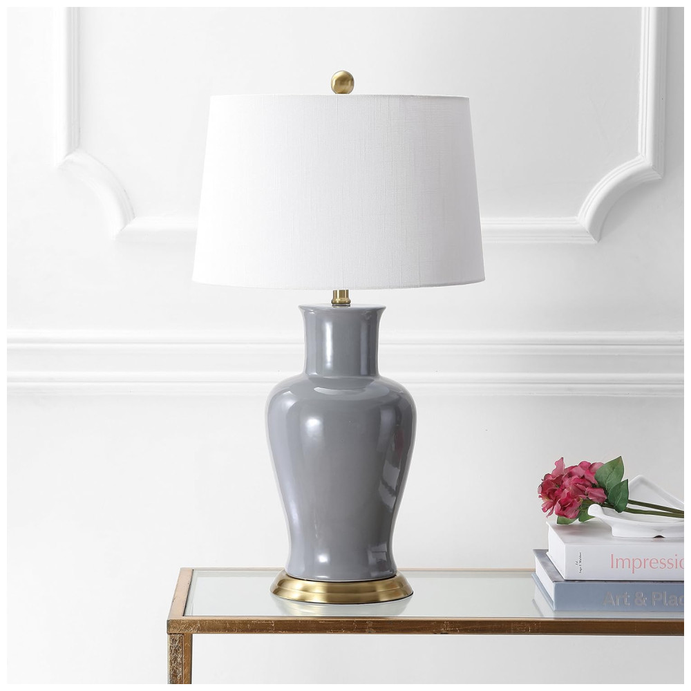 Abajur Luminária de Mesa em Cerâmica Estilo Tradicional com 73 cm de Altura para Quarto Sala de Estar e Escritório 110V 100W JONATHAN Y Cinza