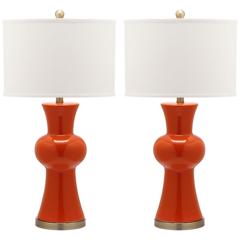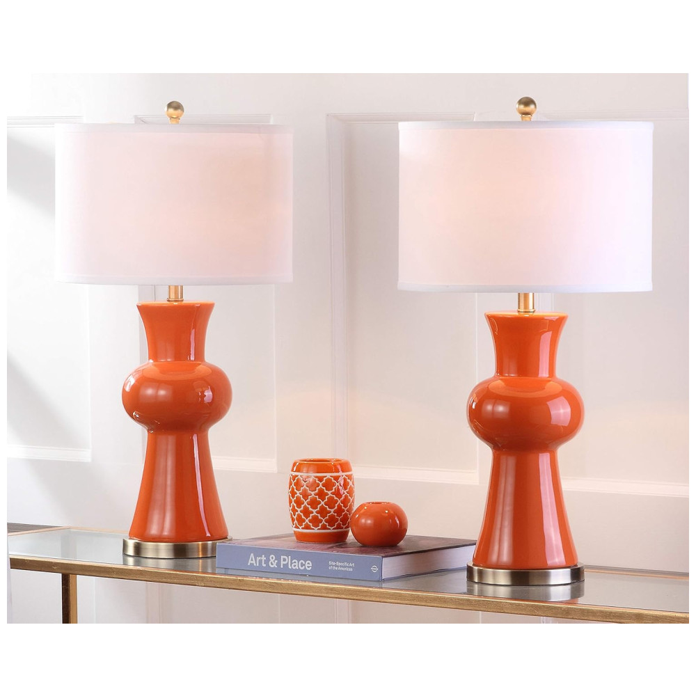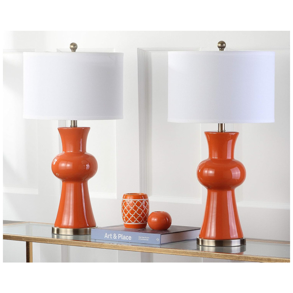 Abajur Luminária de Mesa em Cerâmica Estilo Tradicional com 76 cm de Altura para Quarto Sala de Estar e Escritório 2 Un 110V 100W Safavieh Laranja