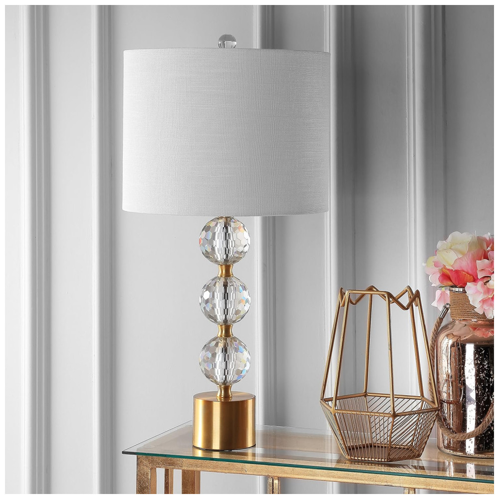 Cada design JONATHAN Y é criado com uma atenção rigorosa aos detalhes, utilizando apenas componentes de primeira linha. Com sede no Soho, Nova York, o designer Jonathan e sua equipe oferecem decoração para a casa que é ao mesmo tempo sofisticada e acessível. Esta luminária de mesa com coluna de cristal e abajur de tambor branco em algodão é a escolha perfeita para adicionar um toque de elegância e charme ao seu espaço.