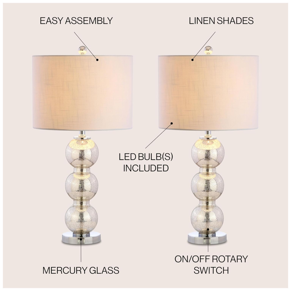 Esta base de luminária é uma peça única e atraente, ideal para qualquer decoração de casa. Confeccionada com vidro soprado em um trio de esferas perfeitamente alinhadas, ela apresenta uma elegante coloração de vidro de mercúrio, combinada com base e acessórios cromados. O design é completado por um remate coordenado e uma cúpula de tambor em linho.