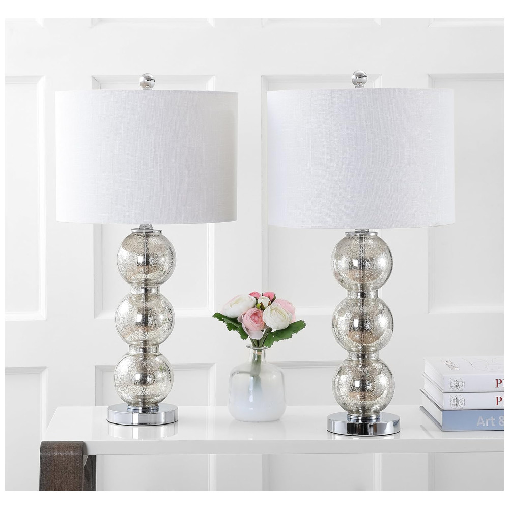 Abajur Luminária de Mesa em Esfera Tripla de Vidro Estilo Contemporânea com 68 cm de Altura 2 Un 110V 100W JONATHAN Y Prata