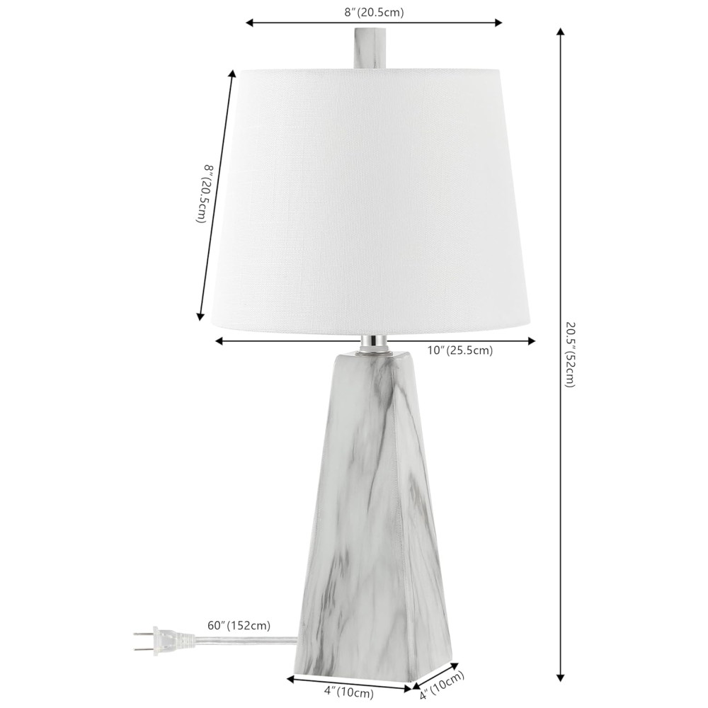 Cada design JONATHAN Y é criado com uma atenção meticulosa aos detalhes e utiliza apenas componentes da mais alta qualidade. Com sede no Soho, Nova York, o designer Jonathan e sua equipe talentosa produzem decoração de alta qualidade e acessível. Os lados facetados do abajur são suavizados pelo efeito marmorizado da cerâmica, enquanto a cúpula é feita de 100% algodão e finalizada com um remate correspondente.