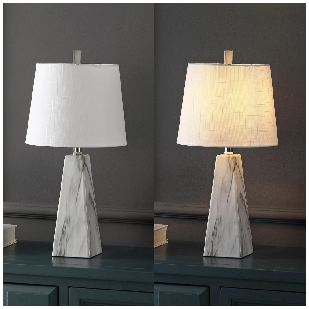 Abajur Luminária de Mesa em Mármore Estilo Contemporânea Moderno com 52 cm de Altura para Quarto Sala de Estar Hall de Entrada e Escritório 110V 40W JONATHAN Y Branco