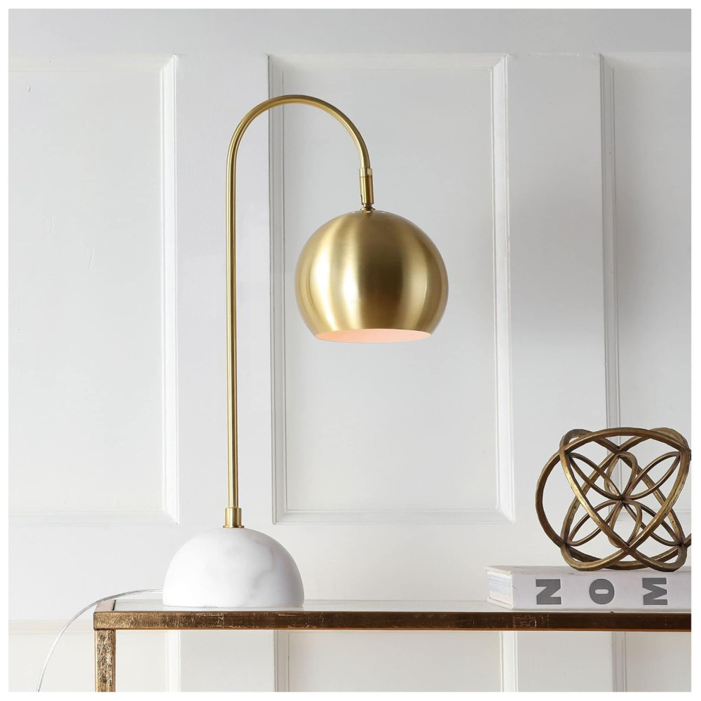 Esta elegante luminária de mesa apresenta um braço arqueado de latão e uma cúpula que certamente chama a atenção em qualquer ambiente. Apoiada sobre uma base decorativa de mármore, ela adiciona um toque chique e moderno à sua decoração.