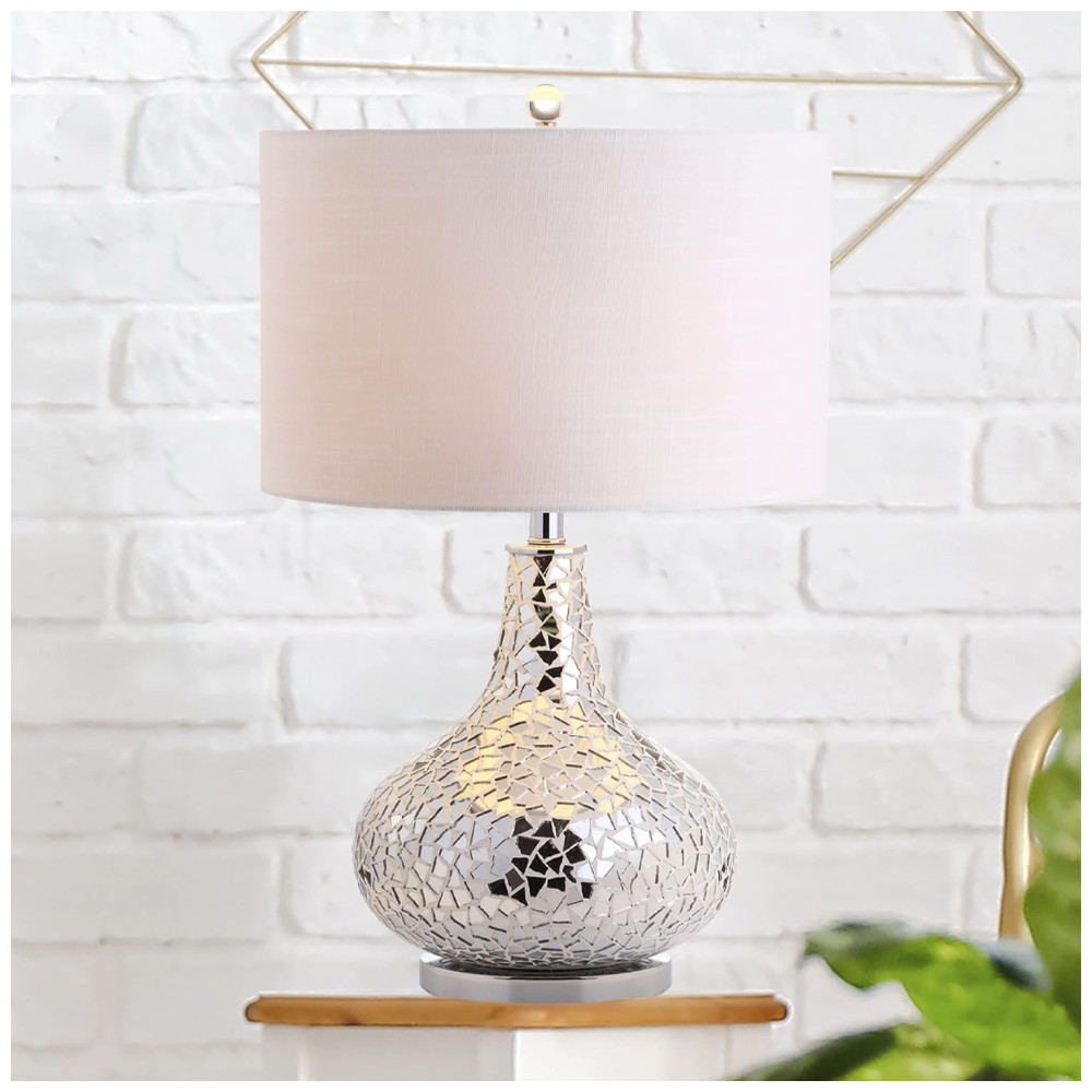 Abajur Luminária de Mesa em Mosaico Espelhado Estilo Contemporânea com 66 cm de Altura para Quarto Sala de Estar e Escritório 110V 100W JONATHAN Y Prata