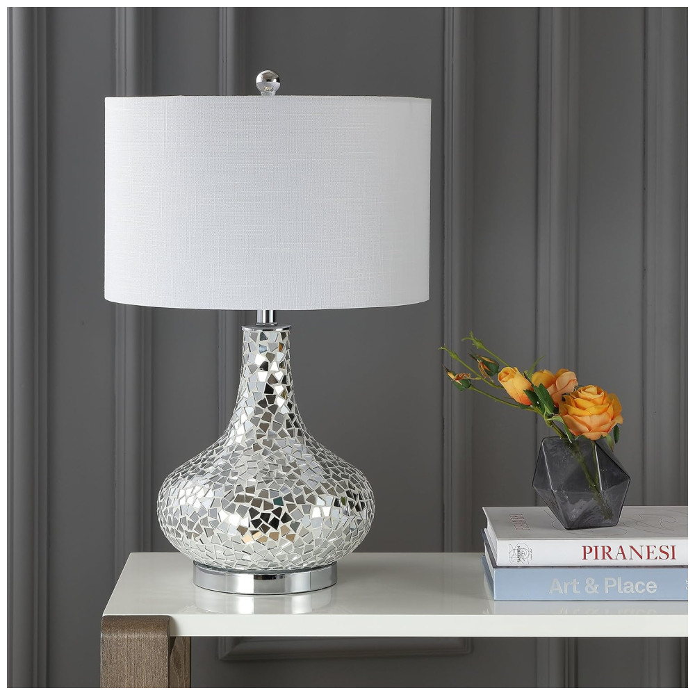 Cada design JONATHAN Y é criado com uma atenção rigorosa aos detalhes, utilizando apenas componentes da mais alta qualidade. A base em formato de lágrima, com incrustação de espelho em mosaico, e o abajur de tambor em algodão 100% branco são os destaques desta luminária exclusiva, garantindo satisfação e estilo para sua decoração.